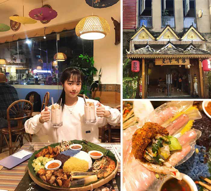 上次去云南,强烈推荐这家餐厅--曼罕哨傣,他们家的香茅草烤鱼、野菜汤、油炸猪皮、傣族粑粑...真的都特别好吃。